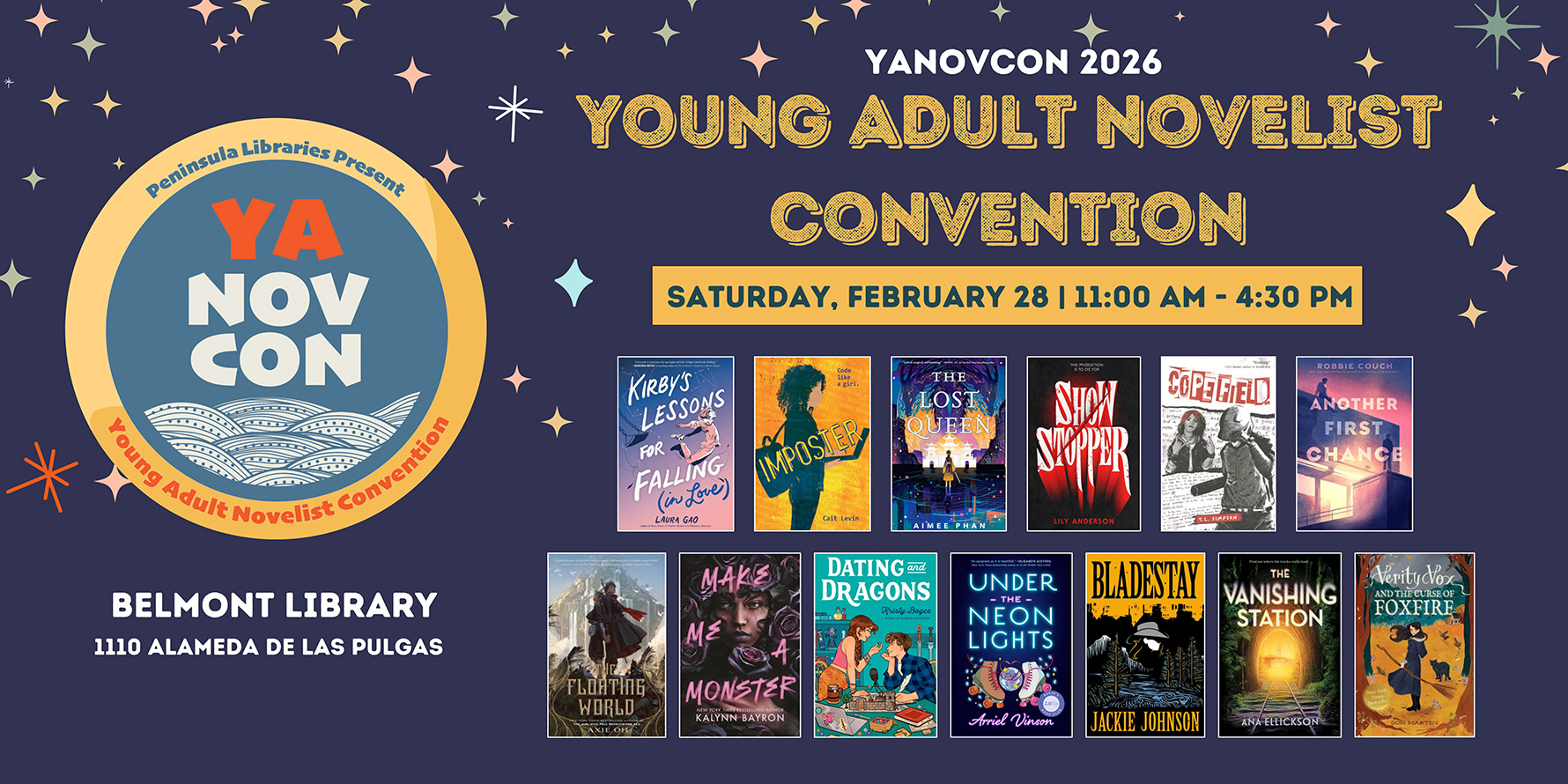 Escape into fiction with us at the 11th annual YANovCon, a free, half-day convention connecting local teens and YA enthusiasts (or fans or readers) to some of today’s top YA authors. The convention will include a Q&A session and three engaging panel discussions exploring topics connected to this year’s theme, Fantasy vs. Reality: Escape into Fiction. YANovCon will conclude with author book signings. Books will be available to purchase on-site thanks to Linden Tree Books. Find out more here!
